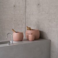 Bubble is zacht gevormd zoals rivierstenen en combineert een subtiele korrelige structuur met vloeiende rondingen die op natuurlijke wijze handvatten vormen. Ontworpen door Frederik Delbart.